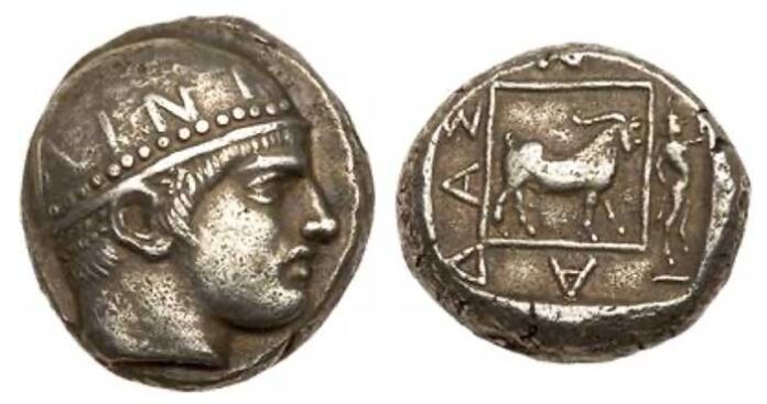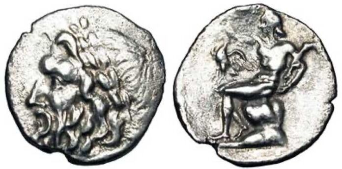 Архаичная тетрадрахма Фракии, отчеканенная между 453 и 451 гг. до н. э., изображает бога в виде сатира на реверсе, прямо рядом с козой, что указывает на его роль пастуха.