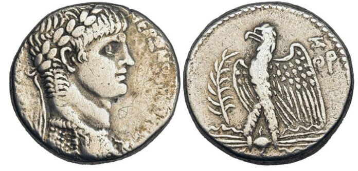 Анахроничная провинциальная тетрадрахма, отчеканенная в Антиохии примерно в 65-66 гг. н. э., изображает гораздо более молодого и худого императора с портретом в старом стиле Юлиев-Клавдиев. Хотя провинциальные монетные дворы имели определенную свободу при разработке дизайна своих монет, это уже крайность. Возможно, чеканщик работал со старыми штампами. Но если нет, то это интересный выбор дизайна, возможно, призванный польстить известному капризному и эгоистичному тирану.