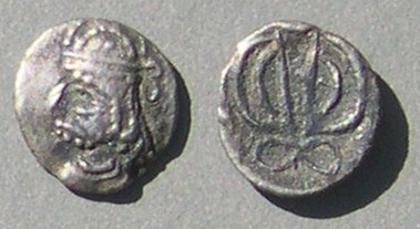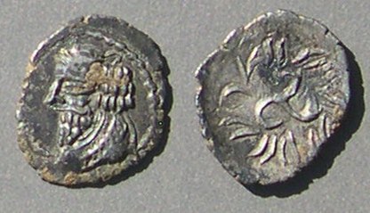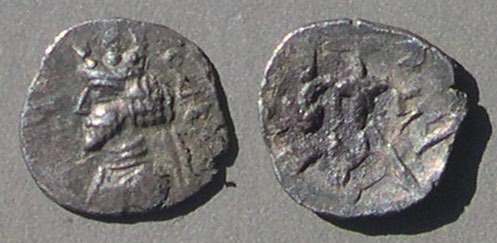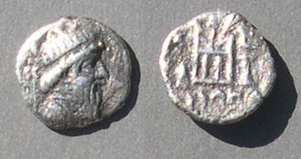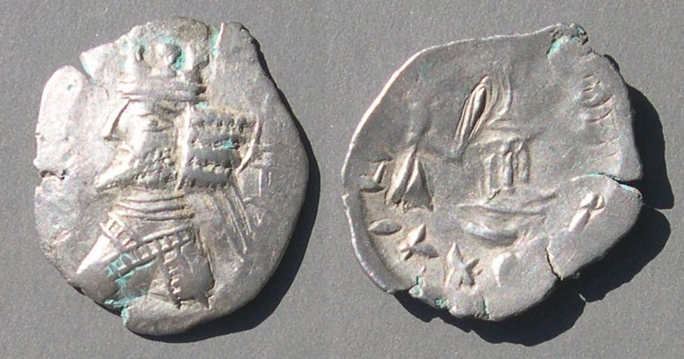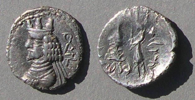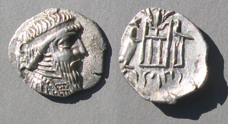 Серебряная драхма царя Вахсира (он же Оксатр), сына Дария II. Первый век до н. э.