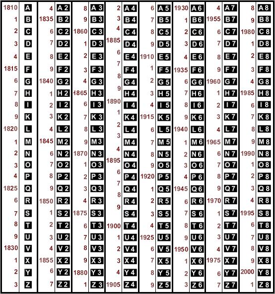 Таблица кодировки дат на серебряных клеймах Финляндии 1810 — 2001