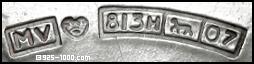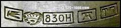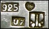 Клеймо изготовителя, национальное клеймо, чистота серебра, клеймо города и код даты (O7 = 1967)