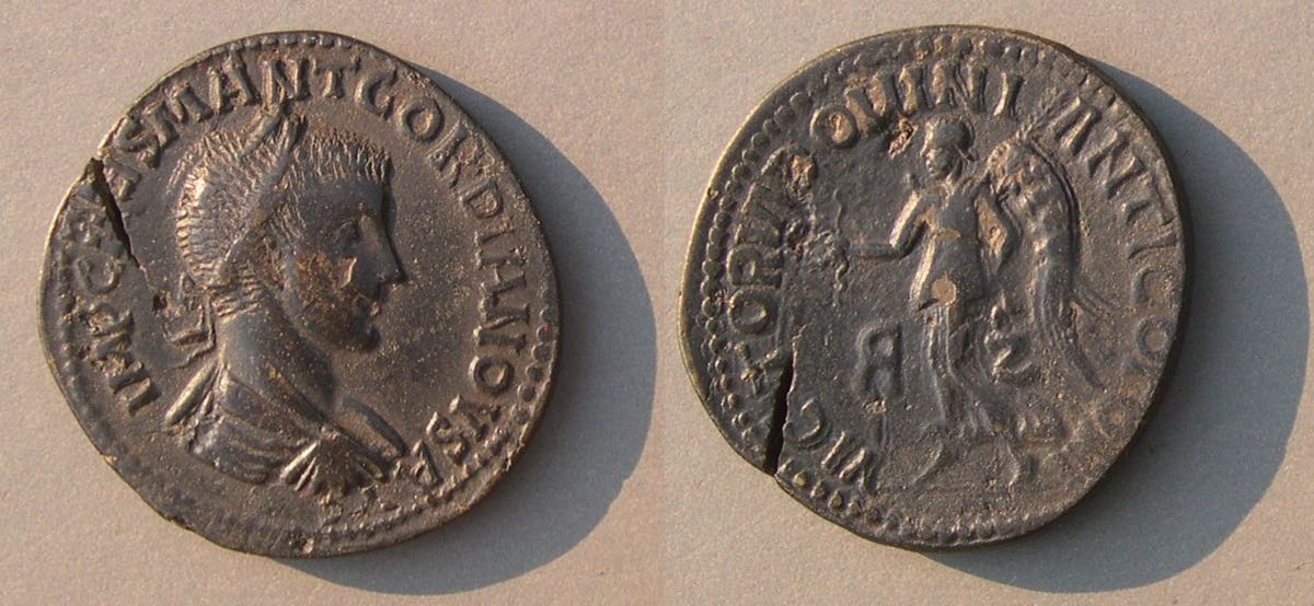 После Гордиана III выпуск самых крупных номиналов был прекращен, но некоторые из самых распространенных монет из всей Малой Азии — это более мелкие монеты, выпущенные в Антиохии Писидийской императорами от Филиппа (244-249) до Галлиена (253-268). К сожалению, императорские имена часто так плохо выгравированы, что бывает трудно идентифицировать императора.