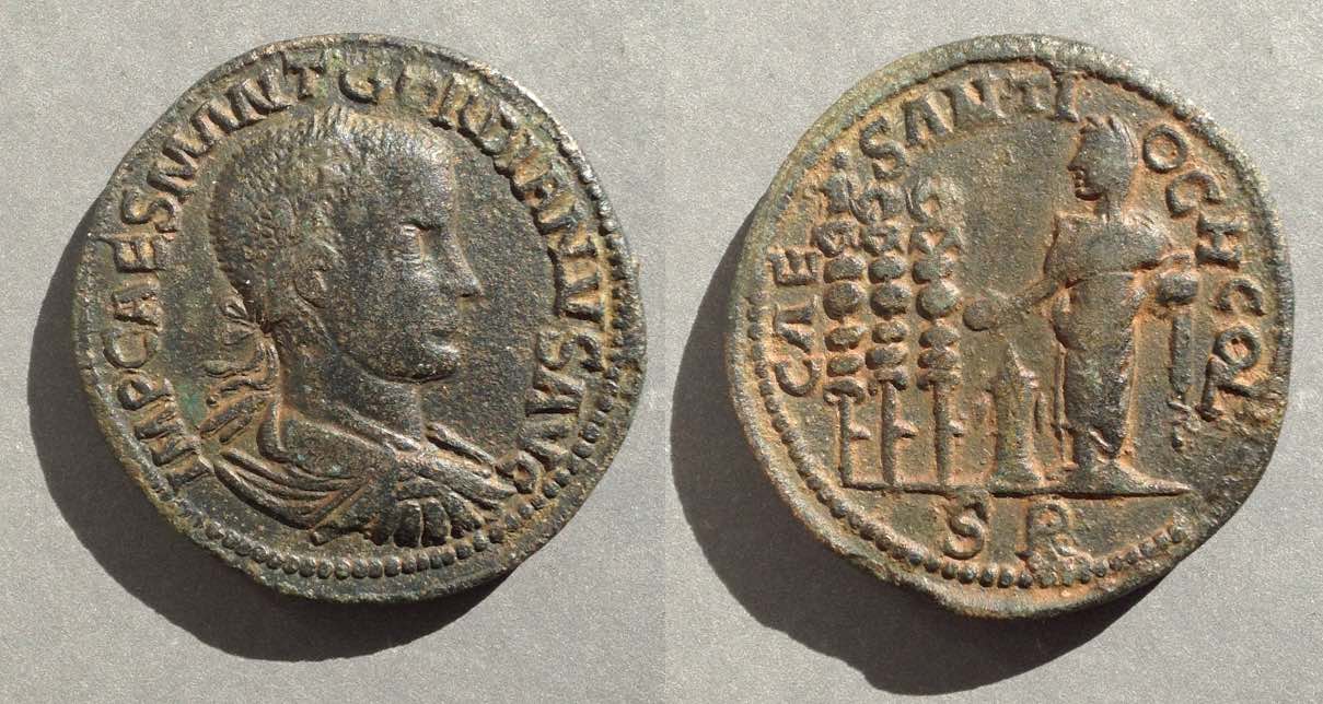 Город ввел этот большой номинал в 33 или 34 мм, в то время когда императорский сестерций был 31 мм или меньше. Мы не знаем его древнего названия и за неимением лучшего называем провинциальным сестерцием. Обширные выпуски при Гордиане III могут быть связаны с императорским благодеянием или его восточными войнами (т. е. мы не знаем, почему было выпущено так много крупных монет]. Монеты размером в сестерций приходят в упадок после Гордиана, и обычными становятся мелкие монеты диаметром около 20 мм.