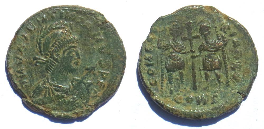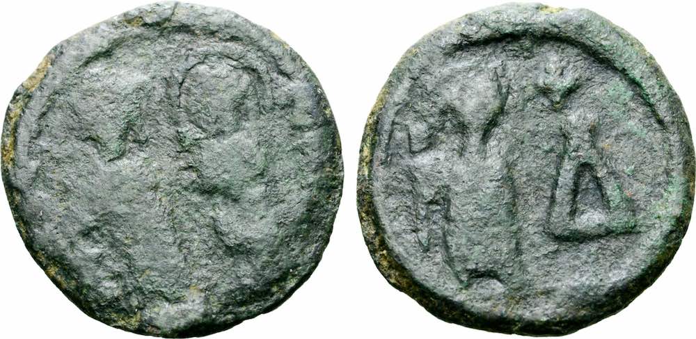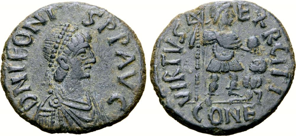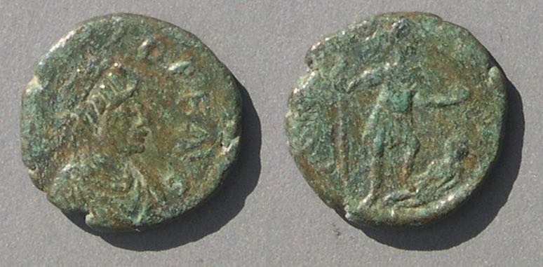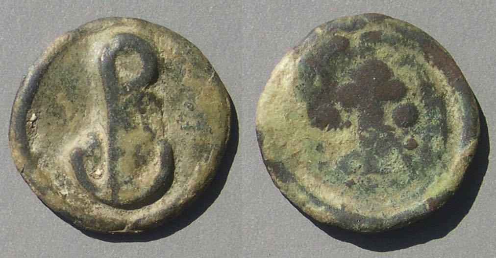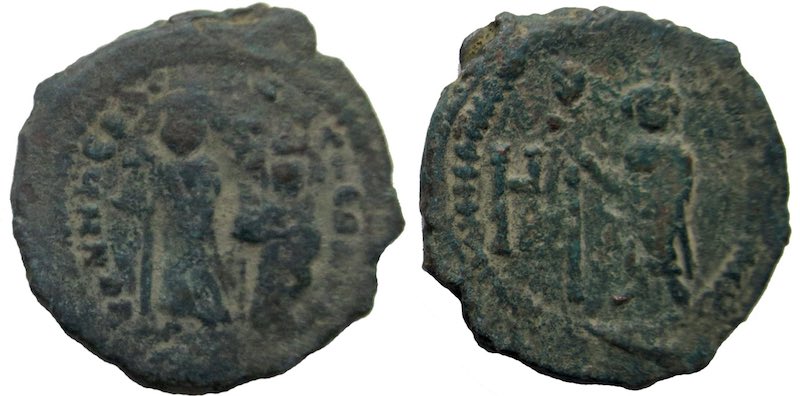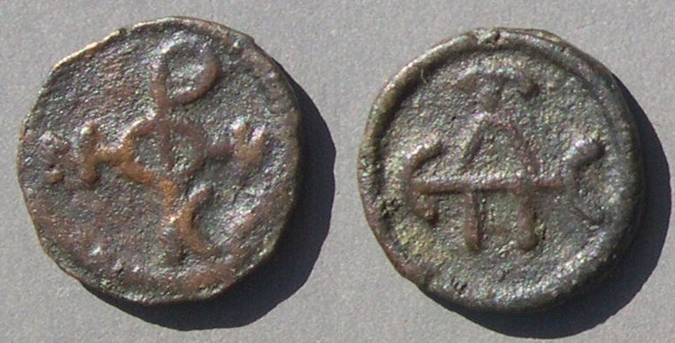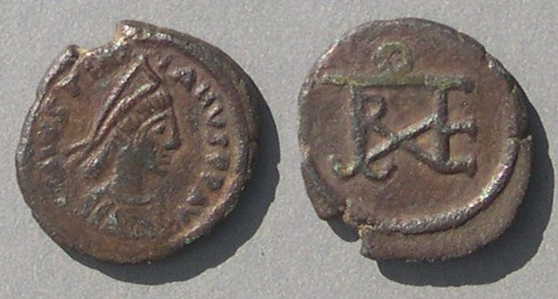 Монеты AE2, которые встречаются исключительно в районе Херсонеса, но с отметкой монетного двора Константинополя могли быть отчеканены в Константинополе и отправлены в Херсонес.