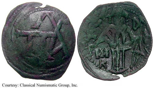Реверс: Крест с раздвоенными концами, пеллеты в каждой четверти. (Константинополь). $600 5/21/03.