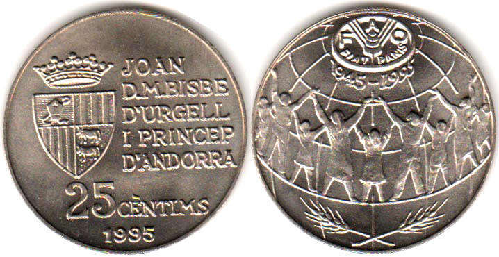 25 CENTIMS 1995 / JOAN D.M.BISBE D'URGELL I PRINCEP D'ANDORRA