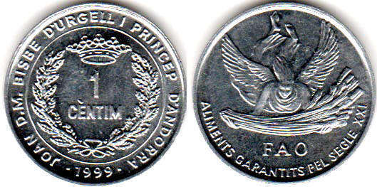 1 CENTIM1999 / JOAN D.M.BISBE D'URGELL I PRINCEP D'ANDORRA