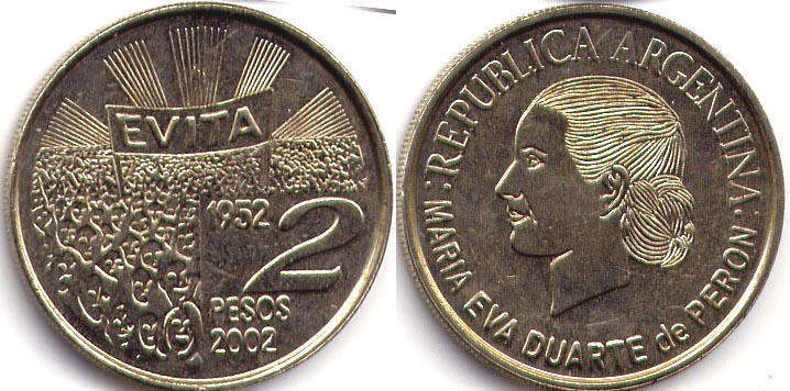 EVITA 1952 / 2 PESOS 2002 / Головы людей