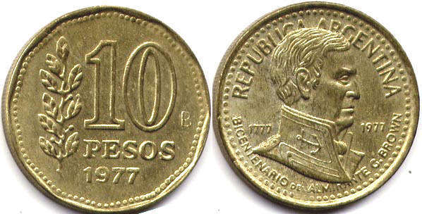 REPUBLICA ARGENTINA / BICENTENARIO DEL ALMIRANTE G.BROWN 1777-1977 / Бюст в мундире вправо
