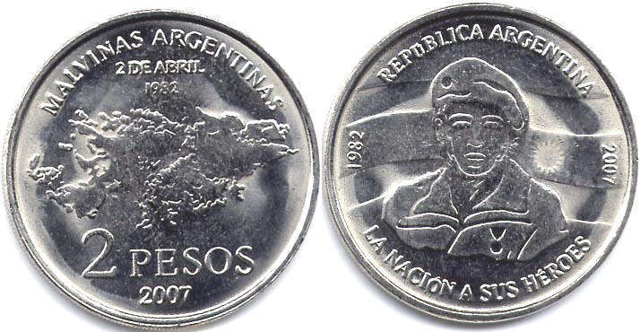 MALVINAS ARGENTINAS / 2 DE ABRIL 1982 / 2 PESOS 2007 / Фолклендские острова