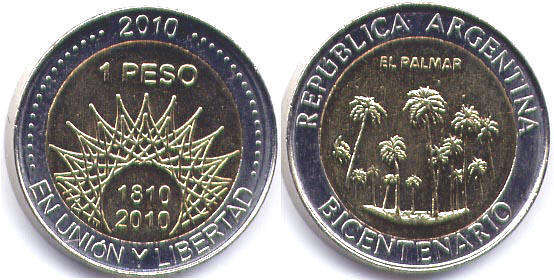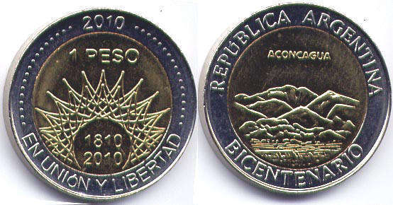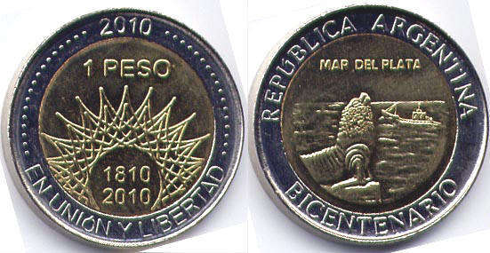 2010 / 1 PESO / 1810 2010 / EN UNION Y LIBERTAD / Восходящее солнце