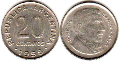 20 CENTAVOS 1955 / REPUBLICA ARGENTINA