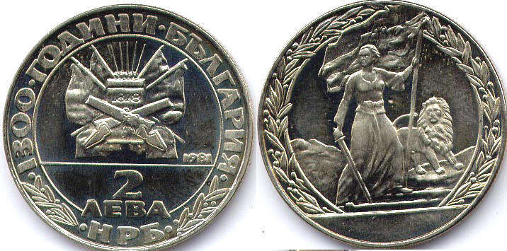 2 ЛЕВА 1981 НРБ / 1300 ГОДИНИ БЪЛГАРИЯ / БЪЛГАРСКИ РЕВОЛЮЦИОННИИ ЦЕНТРАЛНИ КОМИТЕТ