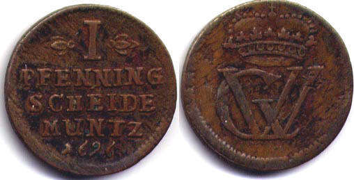 1 PFENNIG SCHEIDE MUNTZ 1696