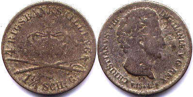 Датская Крона=4 марки; Марка=16 скиллингов (до 1813)