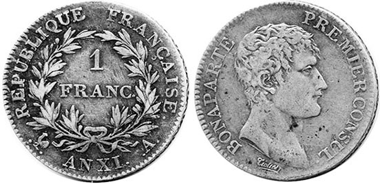 1 FRANC / AN XI / REPUBLIQUE FRANCAISE / Венок