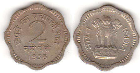 Индийская Рупия=16 анн; Анна=4 пайса; Пайс=3 пая (1947-1957)