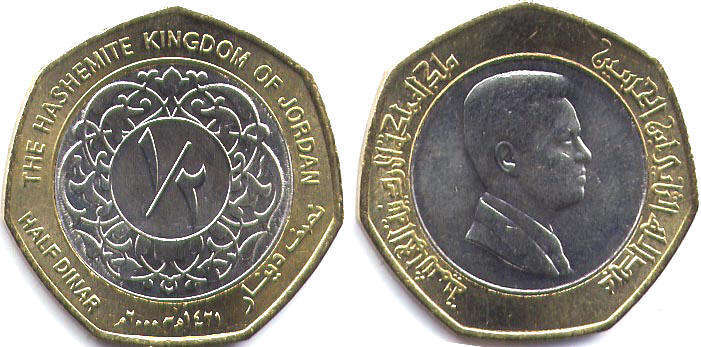1/2 / HALF DINAR 2000 1421 / THE HASHEMITE KINGDOM OF JORDAN