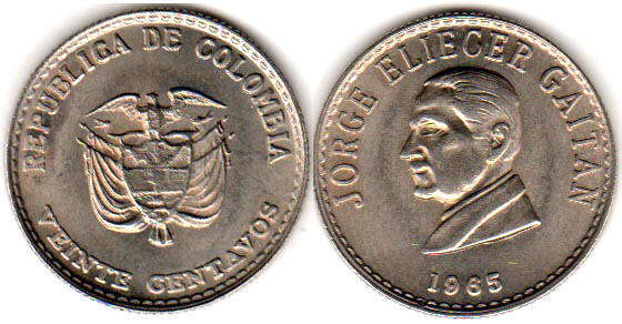 VIENTE CENTAVOS / REPUBLICA DE COLOMBIA / Герб и номинал