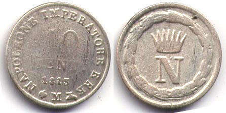 10 CENTi / 1813 / NAPOLEONE IMPERATORE E REX
