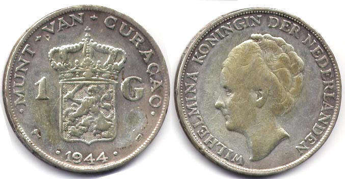 MUNT VAN CURACAO / 1 G 1944 / Герб с короной