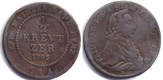 1/2 KREVTZER 1795 RVR MAINZER LAND MVNZ
