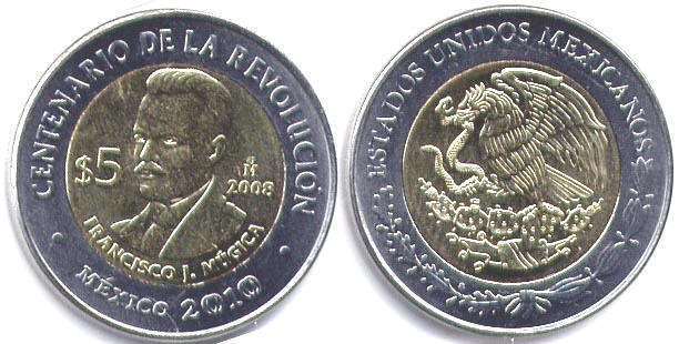 CENTENARIO DE LA REVOLUCION / $5 2008 / FRANSISCO MUGICA / MEXICO 2010 / Бюст в 3/4