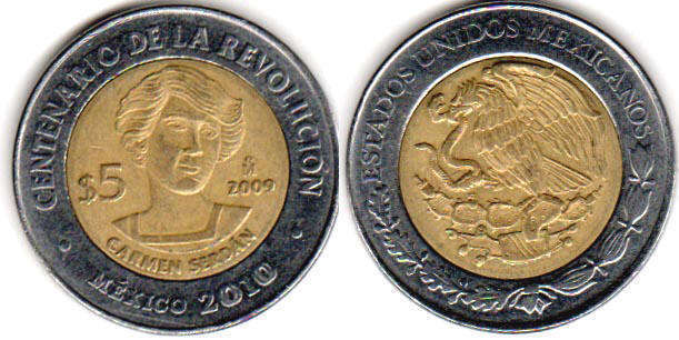 CENTENARIO DE LA REVOLUCION / $5 2009 / CARMEN SERDAN / MEXICO 2010 / Бюст в 3/4