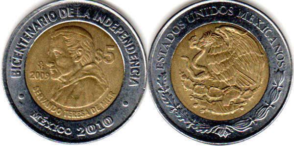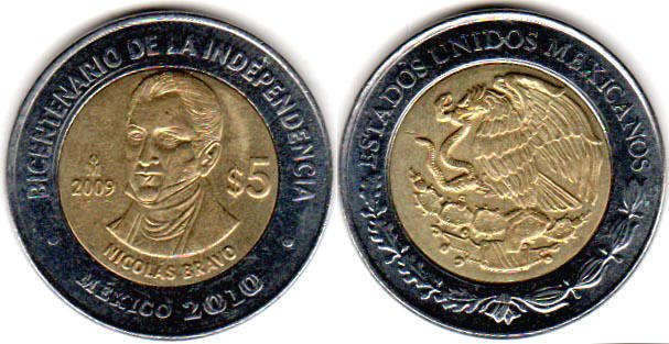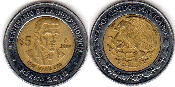 BICENTENARIO DE LA INDEPEDENCIA / $5 2009 / JOSE MARIA COS / MEXICO 2010 / Бюст в 3/4
