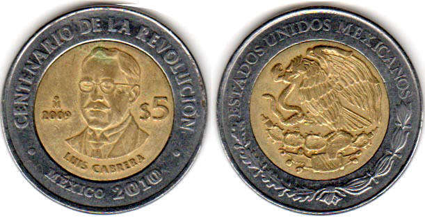 CENTENARIO DE LA REVOLUCION / $5 2009 / LUIS CABRERA / MEXICO 2010 / Бюст в 3/4