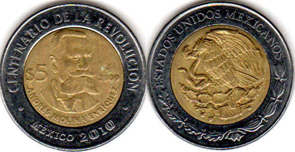 CENTENARIO DE LA REVOLUCION / $5 2009 / ANDRES MOLINA ENRIQUEZ / MEXICO 2010 / Бюст в 3/4
