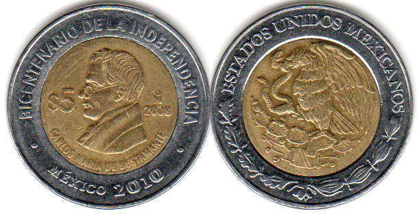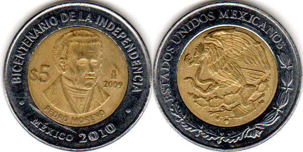BICENTENARIO DE LA INDEPEDENCIA / $5 2009 / PEDRO MORENO / MEXICO 2010 / Бюст в 3/4
