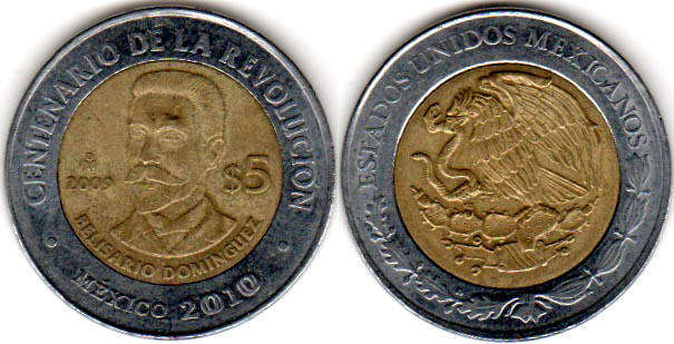 CENTENARIO DE LA REVOLUCION / $5 2009 / BELISARIO DOMINGUEZ / MEXICO 2010 / Бюст в 3/4