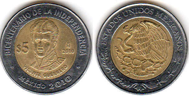BICENTENARIO DE LA INDEPEDENCIA / $5 2010 / VICENTE GUERRERO / MEXICO 2010 / Бюст в 3/4