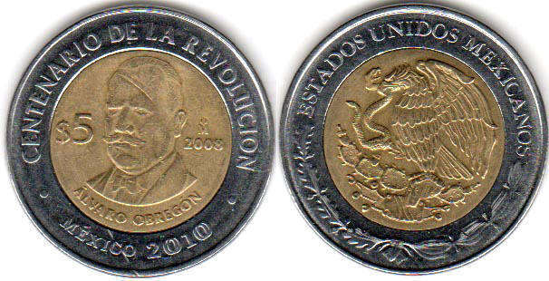 CENTENARIO DE LA REVOLUCION / $5 2008 / ALVARO OBREGON / MEXICO 2010 / Бюст в 3/4