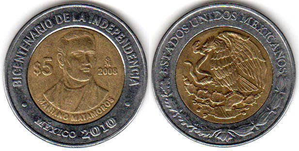BICENTENARIO DE LA INDEPEDENCIA / $5 2008 / MARIANO MATAMOROS / MEXICO 2010 / Бюст в 3/4