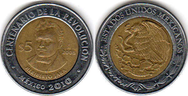 CENTENARIO DE LA REVOLUCION / $5 2008 / HERIBERTO JARA / MEXICO 2010 / Бюст в 3/4