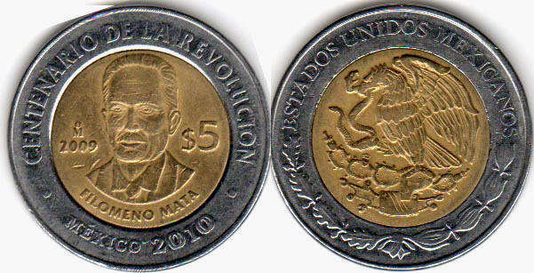 CENTENARIO DE LA REVOLUCION / $5 2009 / FILOMENO MATA / MEXICO 2010 / Бюст прямо