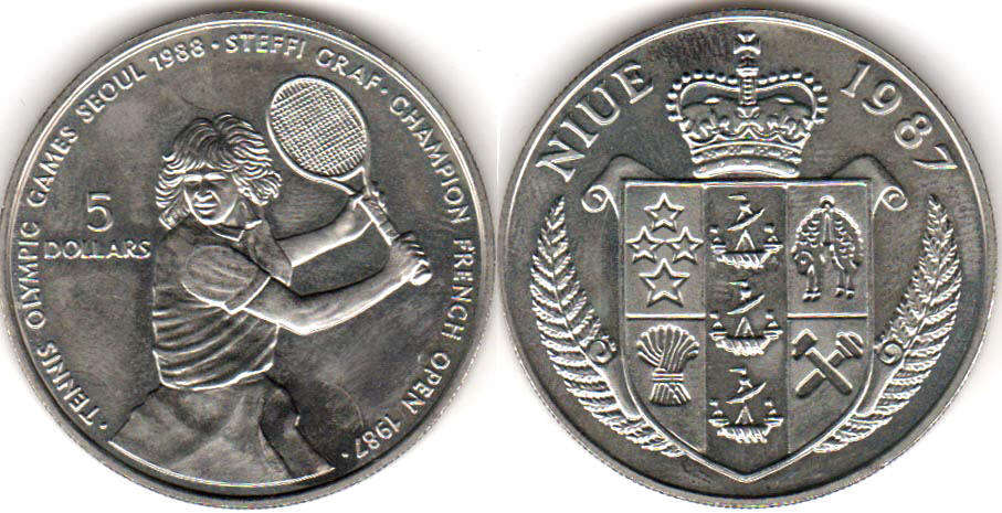 5 DOLLARS / TENNIS OLYMPIC GAMES SEOUL 1988 STEFFI GRAF CHAMPION FRENCH OPEN 1987