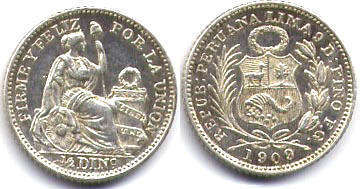 Перуанский Соль=10 динеро; Динеро=10 сентаво (1893-1983)