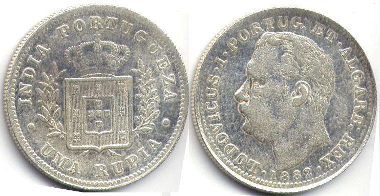 Рупия=2 пардао; Пардао=8 танга; Пардао=240 рейсов