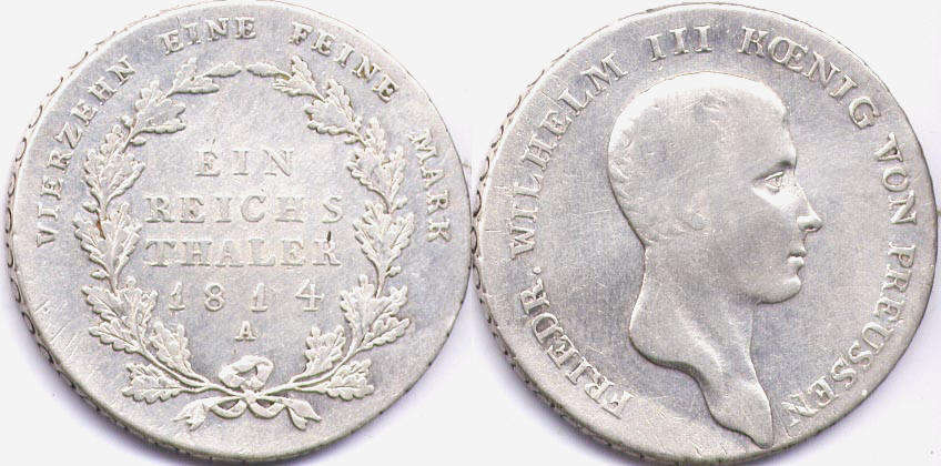 EIN THALER 1814 / VIERZEHN EINE FEINE MARK