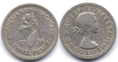 THREE PENCE / RHODESIA AND NYASALAND / 1956 / Огненная лилия