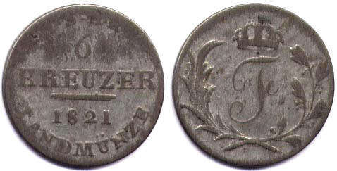 6 KREUZER 1821 / H S H JH / LANDMUNZE