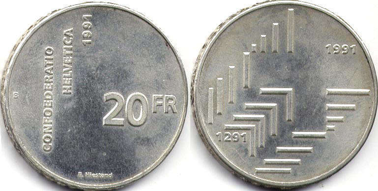 20 FR. / CONFOEDERATIO HELVETICA 1991