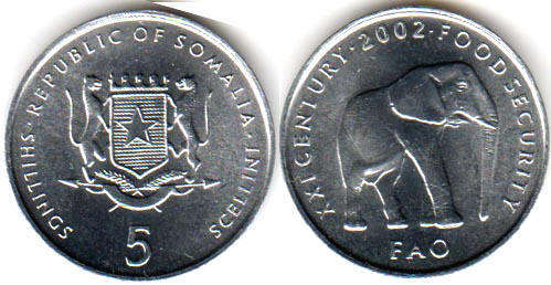 5 / SHILLINGS REPUBLIC OF SOMALIA SCELLINI