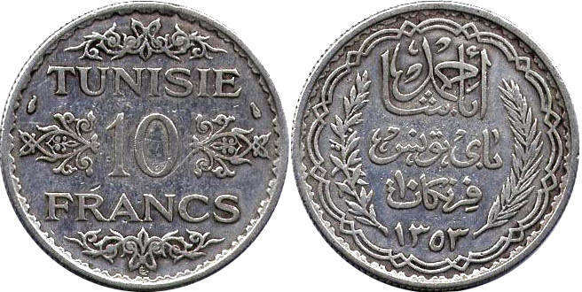10 FRANCS 1939 / TUNISIE / PROTECTORAT FRANCAIS