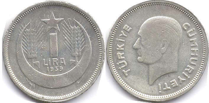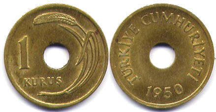 Турецкая Лира=100 куруш; Куруш=40 пар (1935-2004)