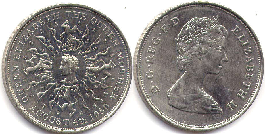 AUGUST 4th 1980 / QUEEN ELIZABETH QUEEN MOTHER / бюст Елизаветы II-матери влево в кругу из львов и знамён