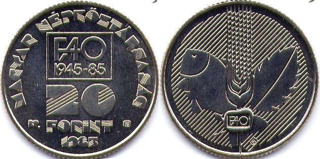 20 FORINT 1985 / MAGYAR NEPKOZTARSASAG / FAO 1945-85